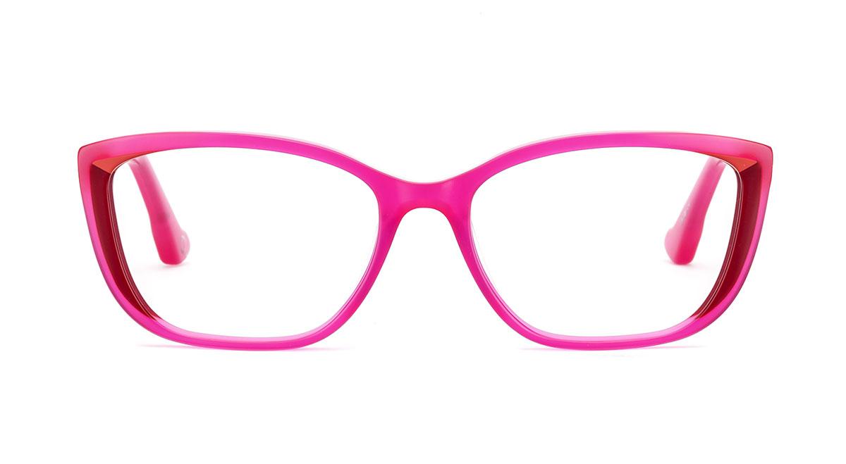 Transparentne różowe opraki o klasycznym kształcie. Oprawki zadowolą fanki wyraźnych kolorów.