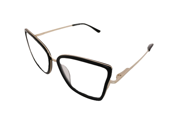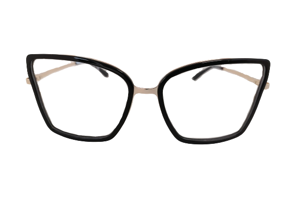 Damskie oprawki o kocim kształcie. Duży rozmiar oraz połaćzenie złota i czerni sprawia, że te oprawki to wybór dla ceniących klasyke ale i odważnych kobiet.