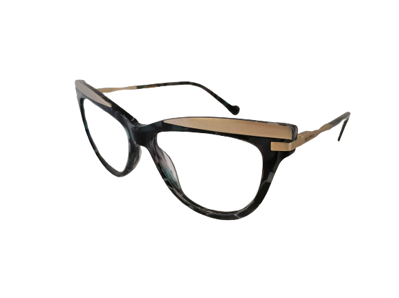 Kocie oprawki wykonane z tworzywa sztucznego. W górnej częsci tarczy oprawki posiadaja złote ozdobniki.