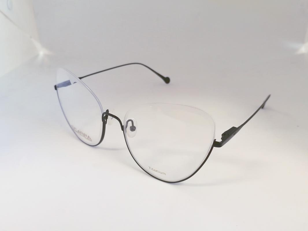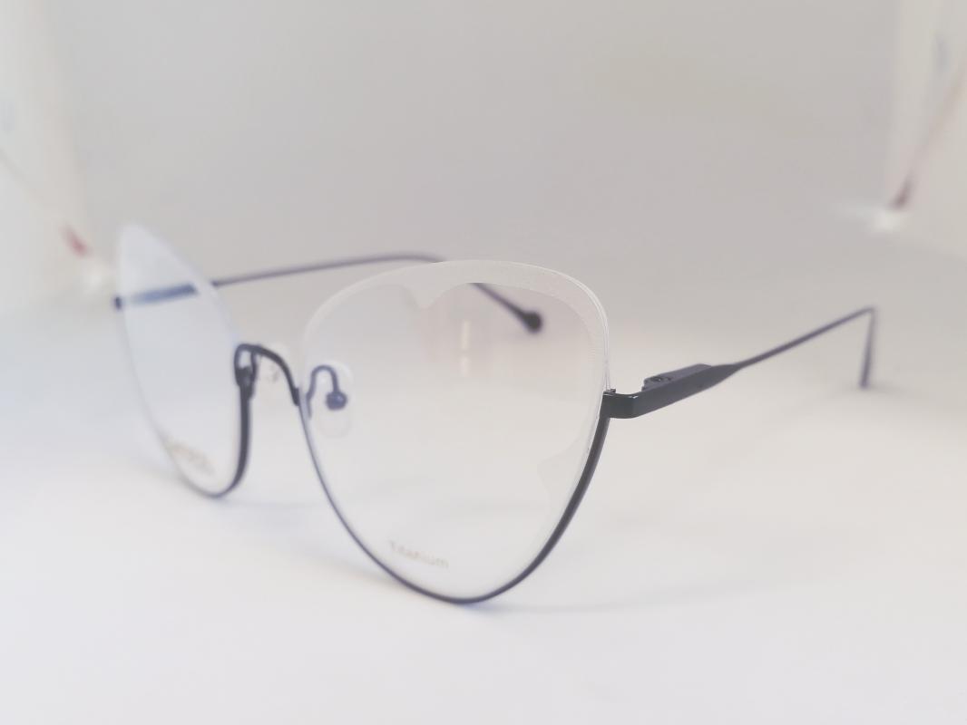 Półramkowe oprawki z czarnego tytanu. Oprawki posiadają wyjątkowy kształ szkieł przypominjący skrzydła motyla.
