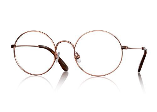 Okrągłe tarcze, wygięty mostek, całość w kolorze złotym z brązowymi nakietkami. Idealna dla osób chcących przenieść się w czasie.